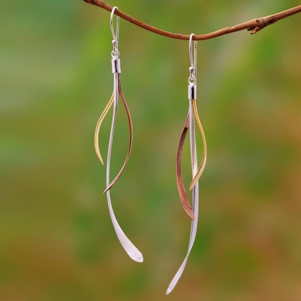 Gold and Rose Gold Accent Sterling Silver Earrings from Bali 'Jimbaran Tendrils' Item ID: 2671476106