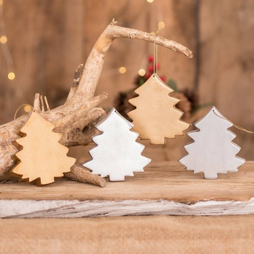 Gold and Silver-Tone Wood Tree Ornaments Set of 4 'Christmas Tree Royalty' Item ID: 2671777237