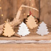 "In royal hues of gold and silver, four charming Christmas trees make an excellent addition to your decor during the holiday season. Guatemala's Valenzuela Family creates this set of ornaments, crafted by hand from conacaste wood."