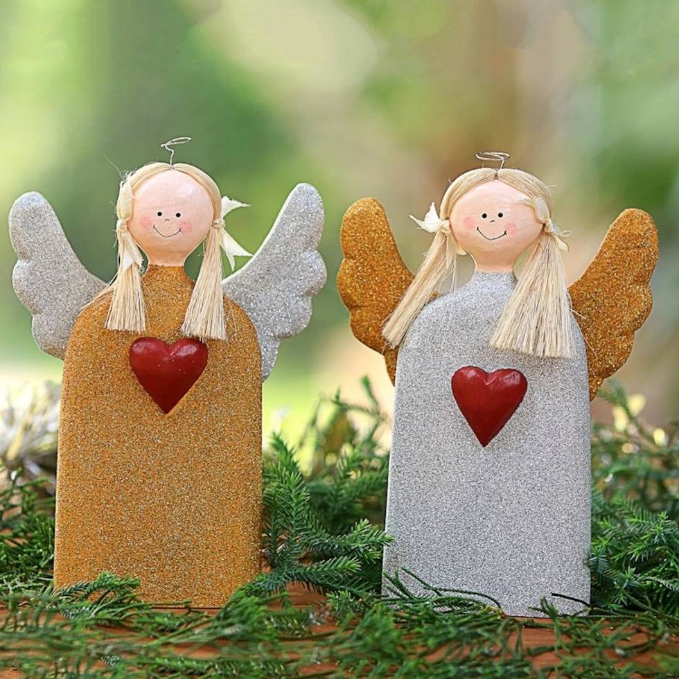 Gold and Silver Wood Angel Statuettes from Bali Pair 'Love Angels' Item ID: 2671735839