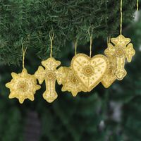 Gold Embroidered and Beaded Christmas Ornaments Set of 6 'The Spirit of Christmas' Item ID: 2669943937