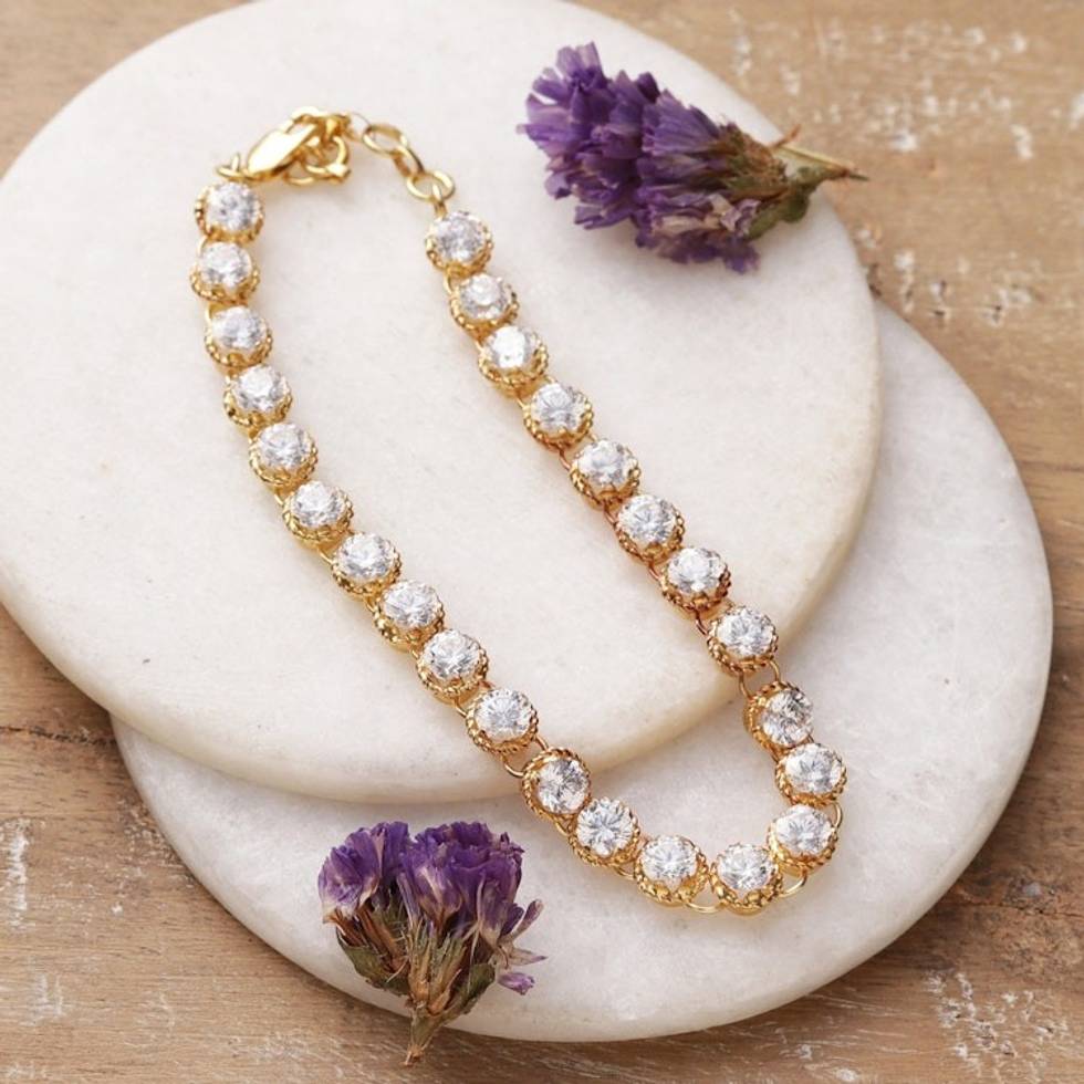 Gold-Plated 12-Carat Cubic Zirconia Tennis Style Bracelet 'Victorious Sparkle' Item ID: 2671781359