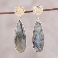 I love everything about these! They sparkle, but subtly enough to wear daily. They swing from my ears with enough weight to remind me of their presence, but not so much that they "pull me down." I love the feel of them against my neck. The combination of the near-clear and deeply colorful labradorite is brilliant - literally and figuratively. The large stones are of surpassing quality with depth and a multitude of colors the Aurora would be envious of.