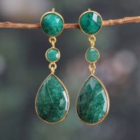 Gold-Plated 30-Carat Beryl and Aventurine Dangle Earrings 'Emerald Glam' Item ID: 2671625441