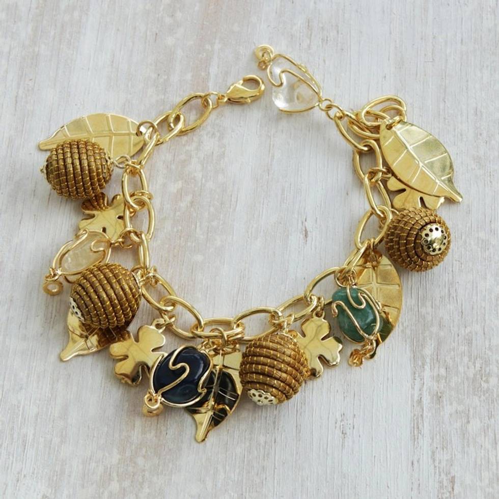 Gold Plated Agate and Citrine Charm Bracelet from Brazil 'Clover Leaves' Item ID: 2669887399