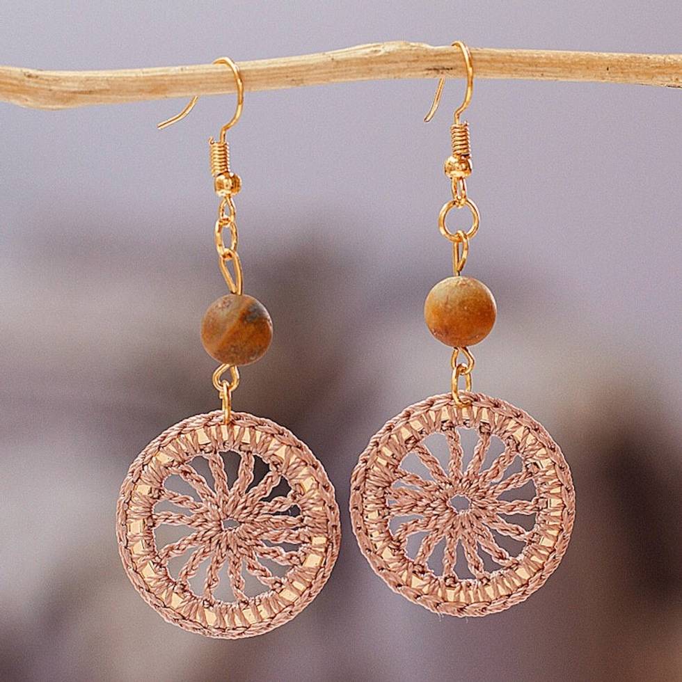 Gold-Plated Amazonite Crocheted Earrings 'Morgana in Rose' Item ID: 2671808339