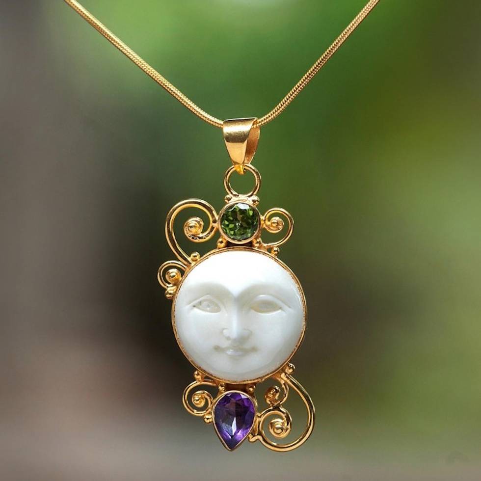 Gold Plated Amethyst and Peridot Pendant Necklace from Bali 'Round Moon' Item ID: 2670902810