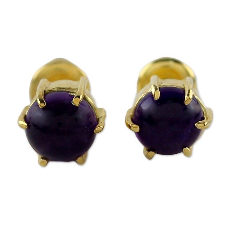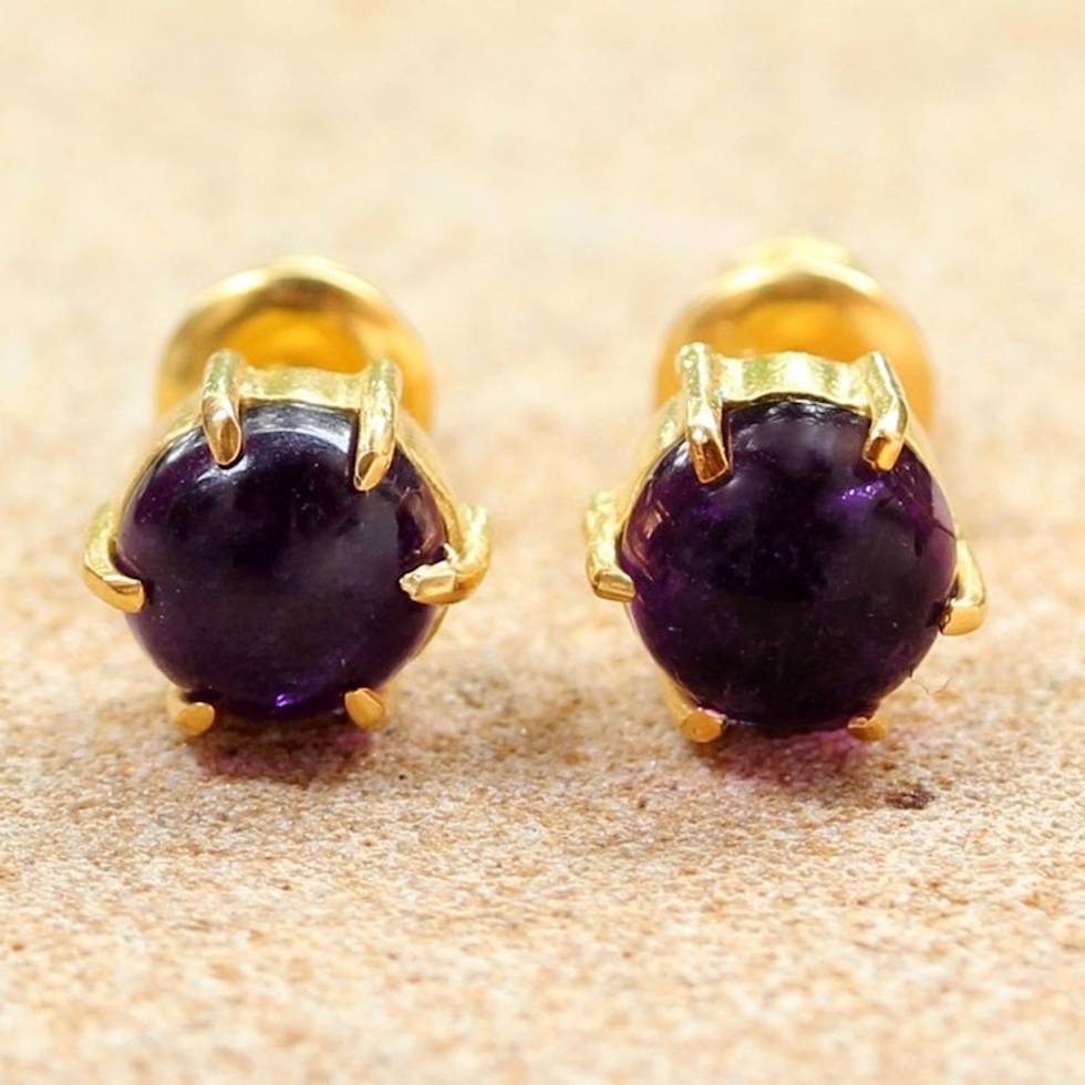 Gold Plated Amethyst Stud Earrings from Thailand 'Thai Buds' Item ID: 2671801245