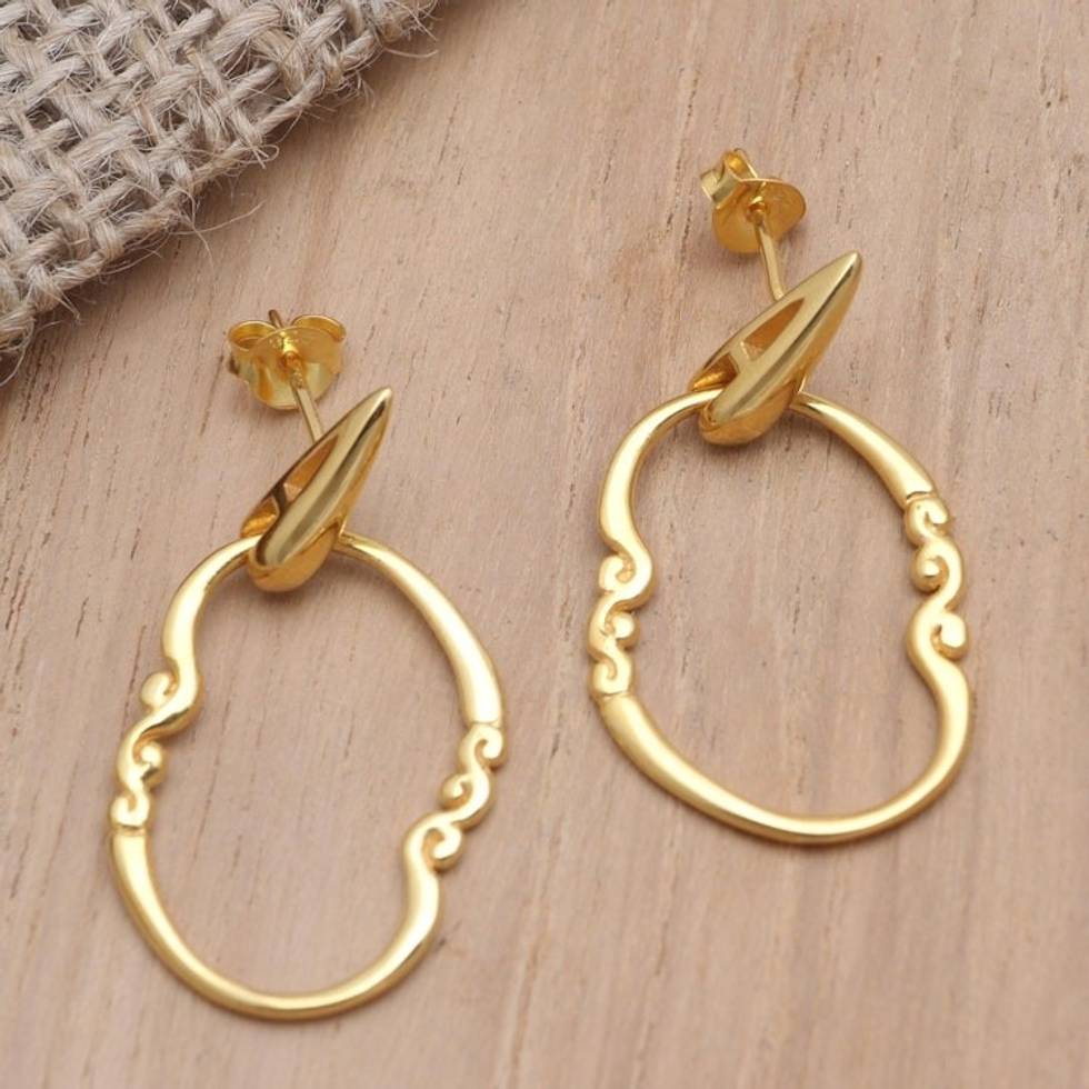 Gold-Plated Balinese Dangle Earrings 'Mango Babies' Item ID: 2671745957