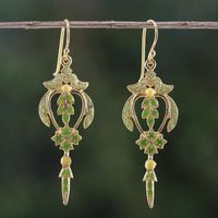 Gold Plated Brass Earrings in Green from Thailand 'Proud Beauty in Green' Item ID: 2671800701
