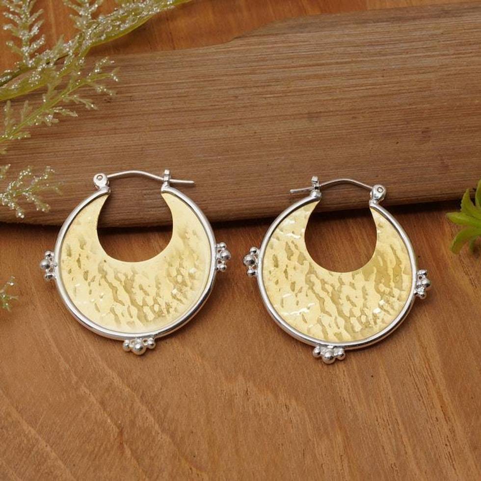 Gold-Plated Brass Sterling Silver Hammered Hoop Earrings 'Caretaker of Glamour' Item ID: 2676660526