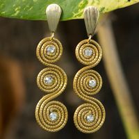 Gold Plated Brazilian Golden Grass and Rhinestone Earrings 'Sparkle and Swirl' Item ID: 2669935453