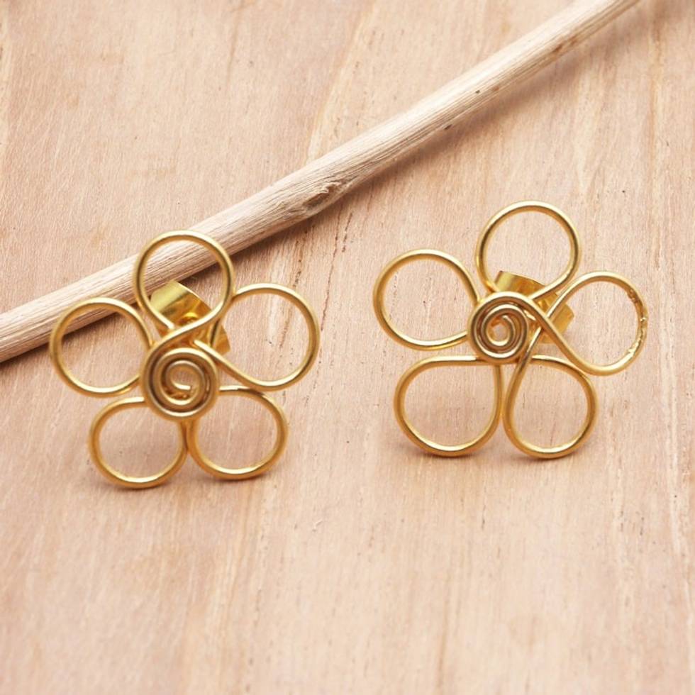Gold-Plated Button Earrings with Floral Motif 'Cheerful Flower' Item ID: 2671748442
