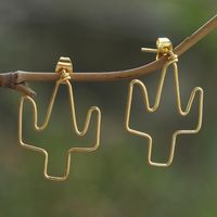 Gold-Plated Cactus Drop Earrings from Bali 'Cactus Party' Item ID: 2671747378