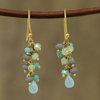 Gold Plated Chalcedony Cluster Earrings from India 'Fruit of the Tropics' Item ID: 2671790059