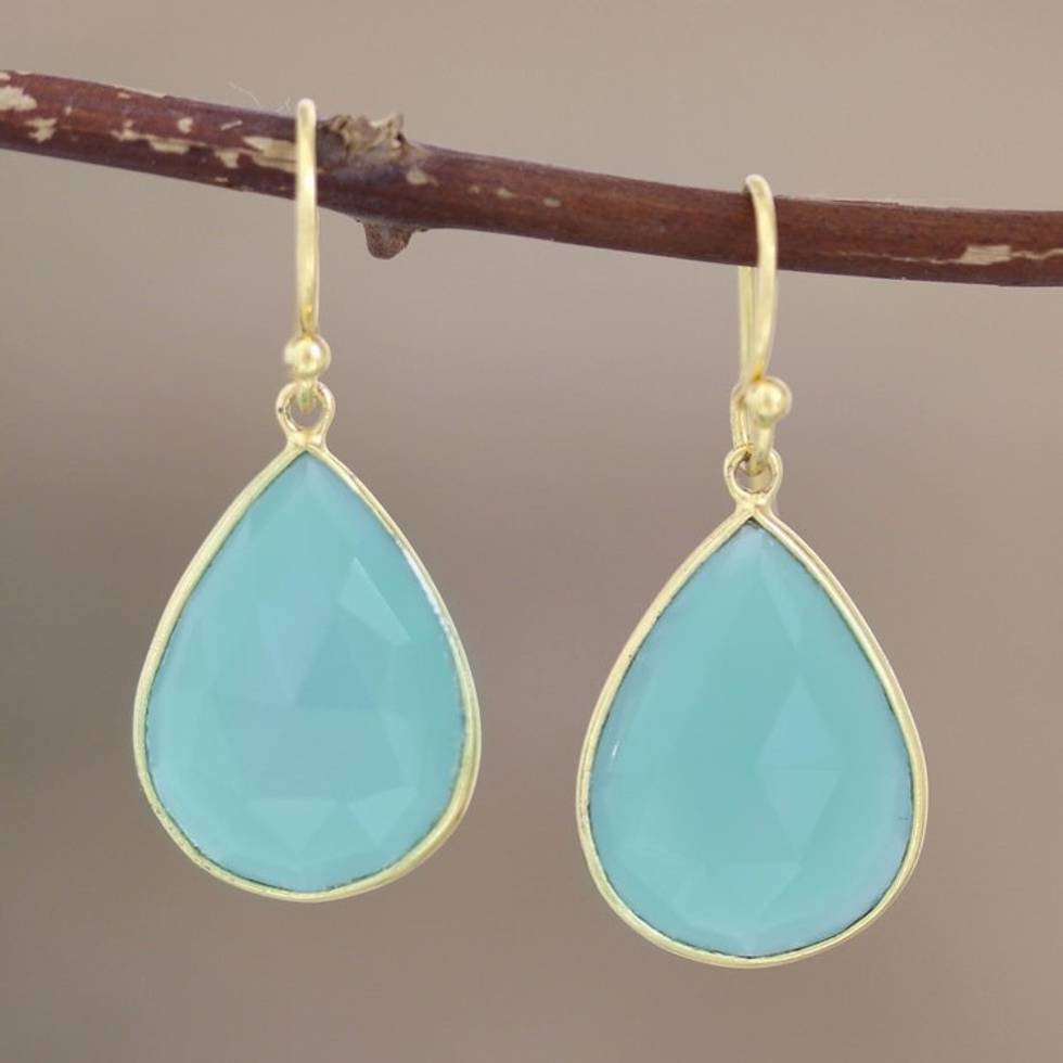 Gold-Plated Chalcedony Dangle Earrings from India 'Evening Rainfall' Item ID: 2671789091