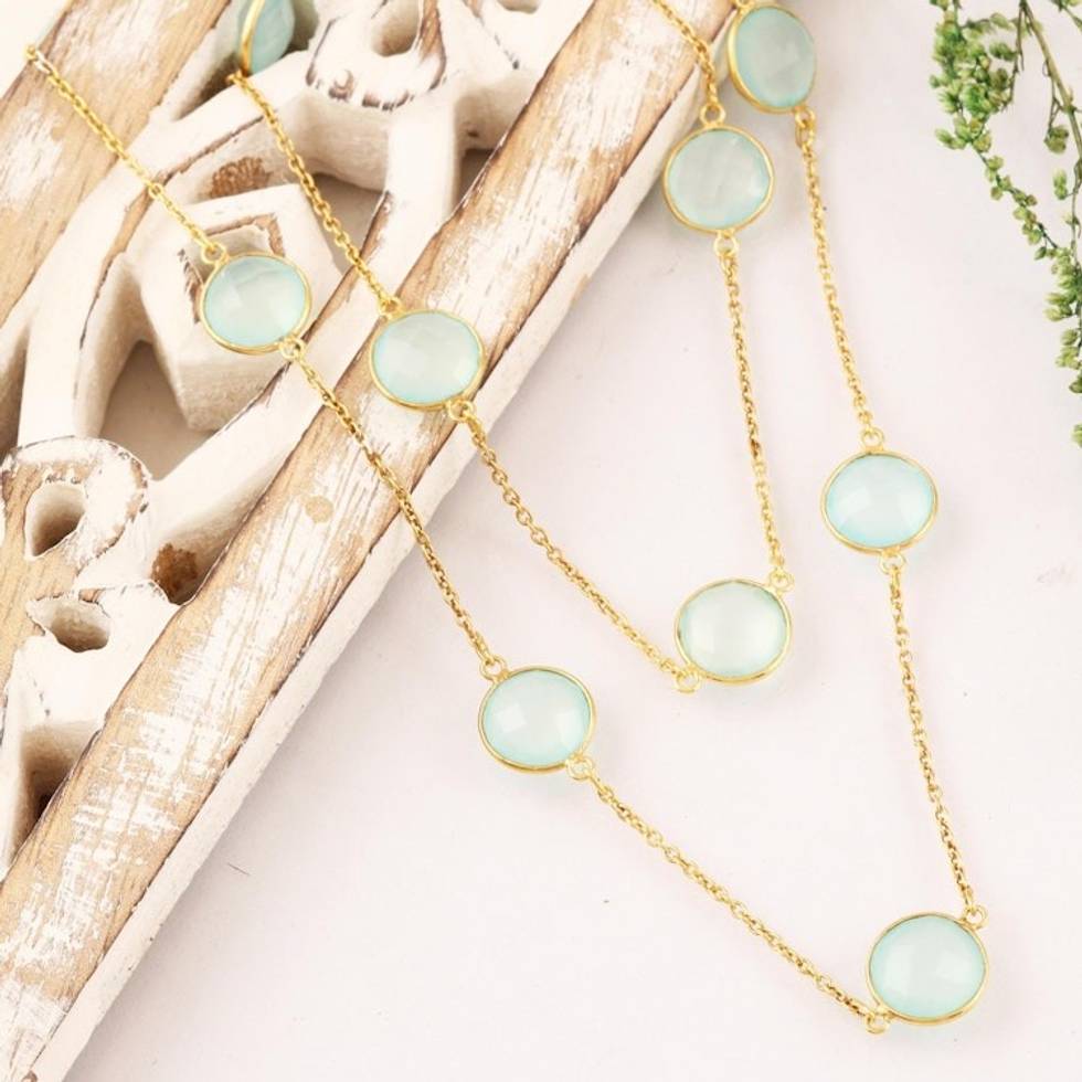 Gold Plated Chalcedony Station Necklace from India 'Skyward Charm' Item ID: 2671793225