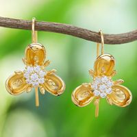 Gold-Plated Cubic Zirconia Drop Earrings with Floral Motif 'Golden Petals' Item ID: 2671797732