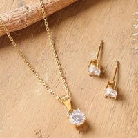 Gold-Plated Cubic Zirconia Pendant Necklace and Earrings Set 'Timeless Luster' Item ID: 2676664473