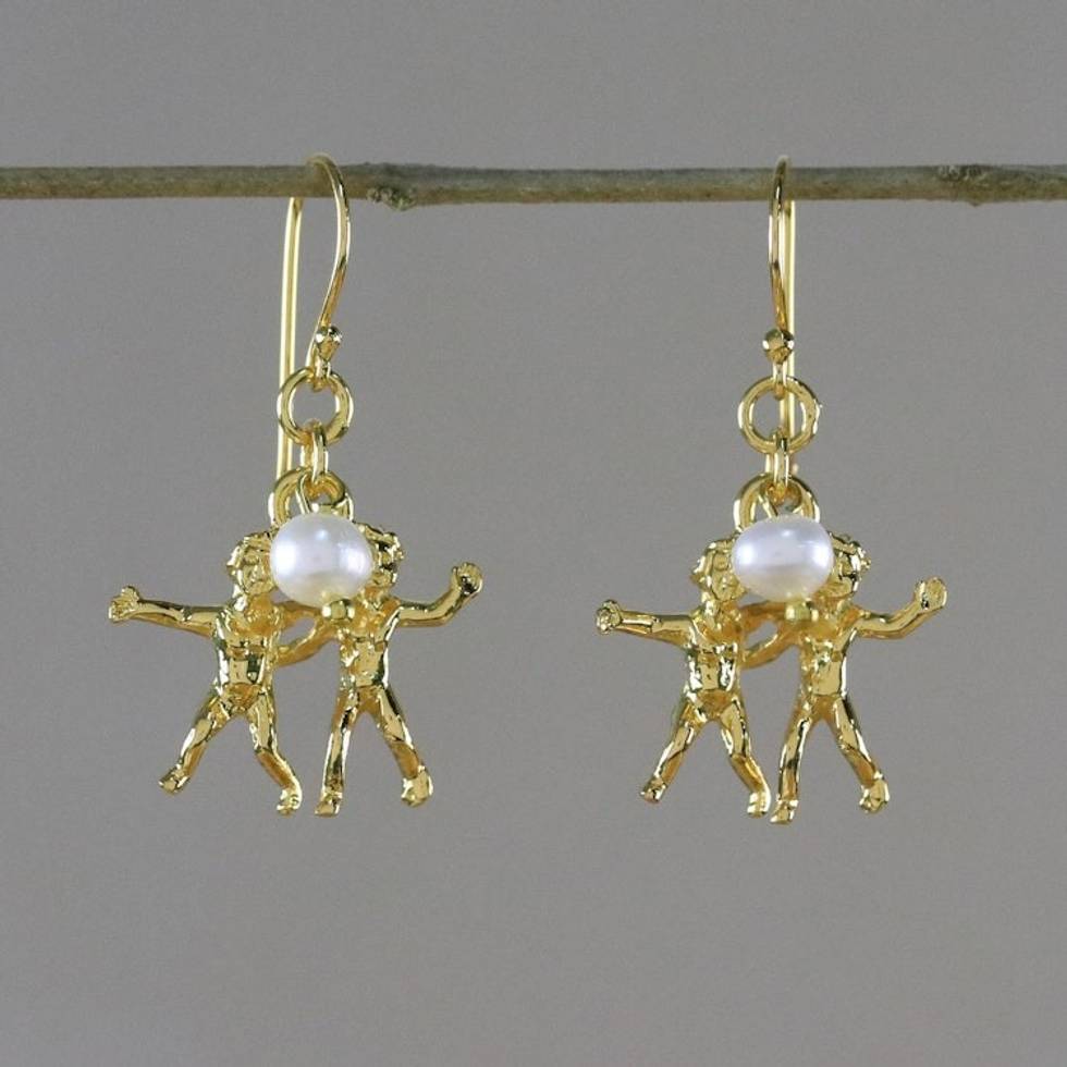 Gold Plated Cultured Pearl Gemini Earrings from Thailand 'Radiant Gemini' Item ID: 2671801697