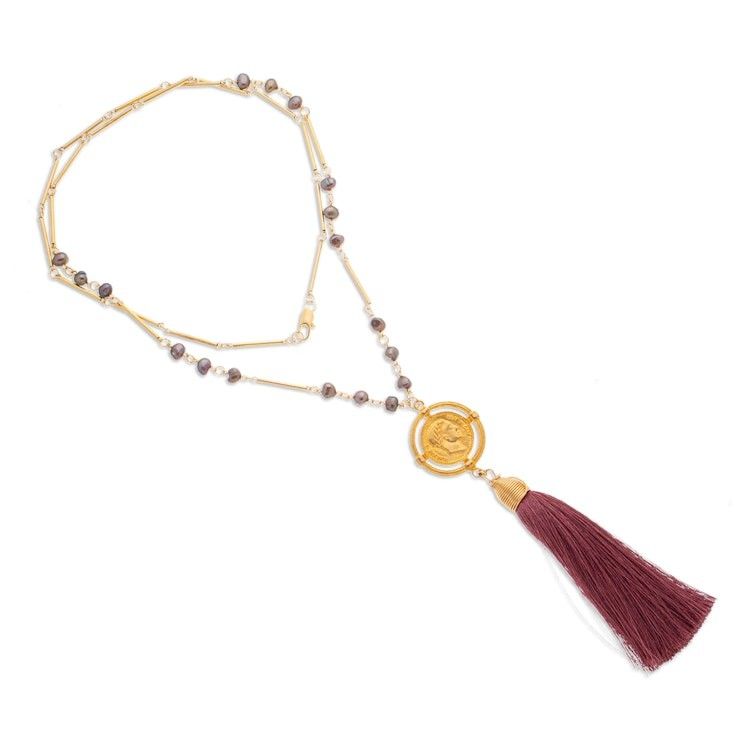 Gold-Plated Cultured Pearl Long Y Necklace with Tassel 'Graceful Sway' Item ID: 2671807645