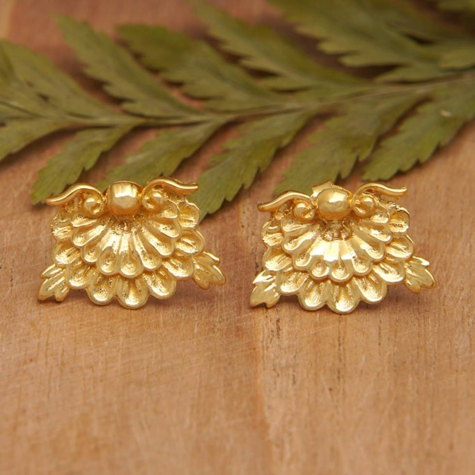 Gold-Plated Dandelion Themed Stud Earrings from Bali 'Shiny Dandelion' Item ID: 2671764554