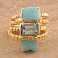 Gold Plated Druzy Gemstone Rings from India Set of 5 'Blue Rectangles' Item ID: 2671667430