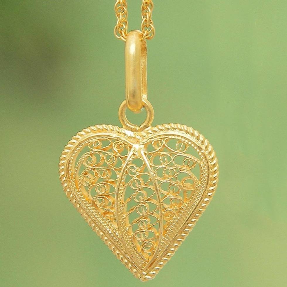 Gold Plated Filigree Heart Necklace 'Lace Sweetheart' Item ID: 2671819282