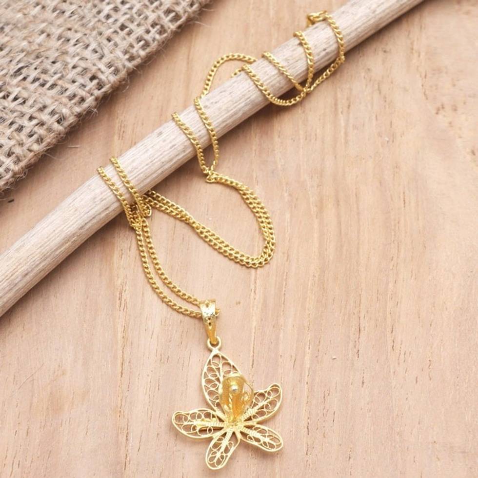 Gold-Plated Floral Filigree Pendant Necklace 'Azalea Flower' Item ID: 2671745915