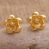 Gold-Plated Floral-Motif Button Earrings 'Cosmos Flower' Item ID: 2671745016