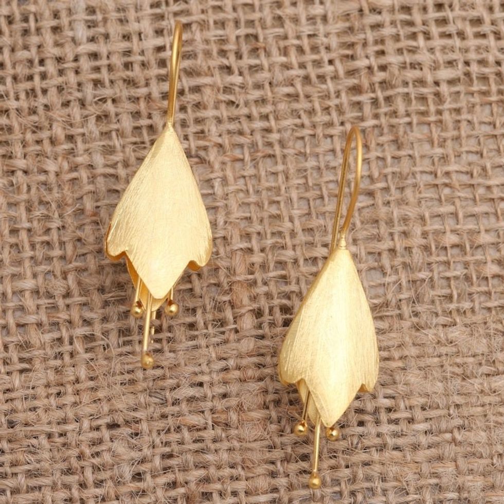 Gold-Plated Floral-Motif Drop Earrings 'Flower Essence' Item ID: 2671745275