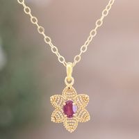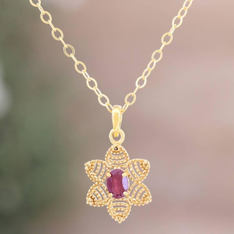 Gold Plated Flower Necklace with a Red Ruby 'Flower of Delhi' Item ID: 2671789218