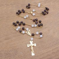 Gold Plated Garnet and Moonstone Rosary from Bali 'Gemstone Cross' Item ID: 2671744966