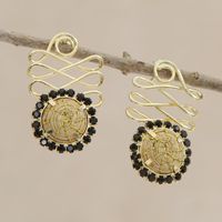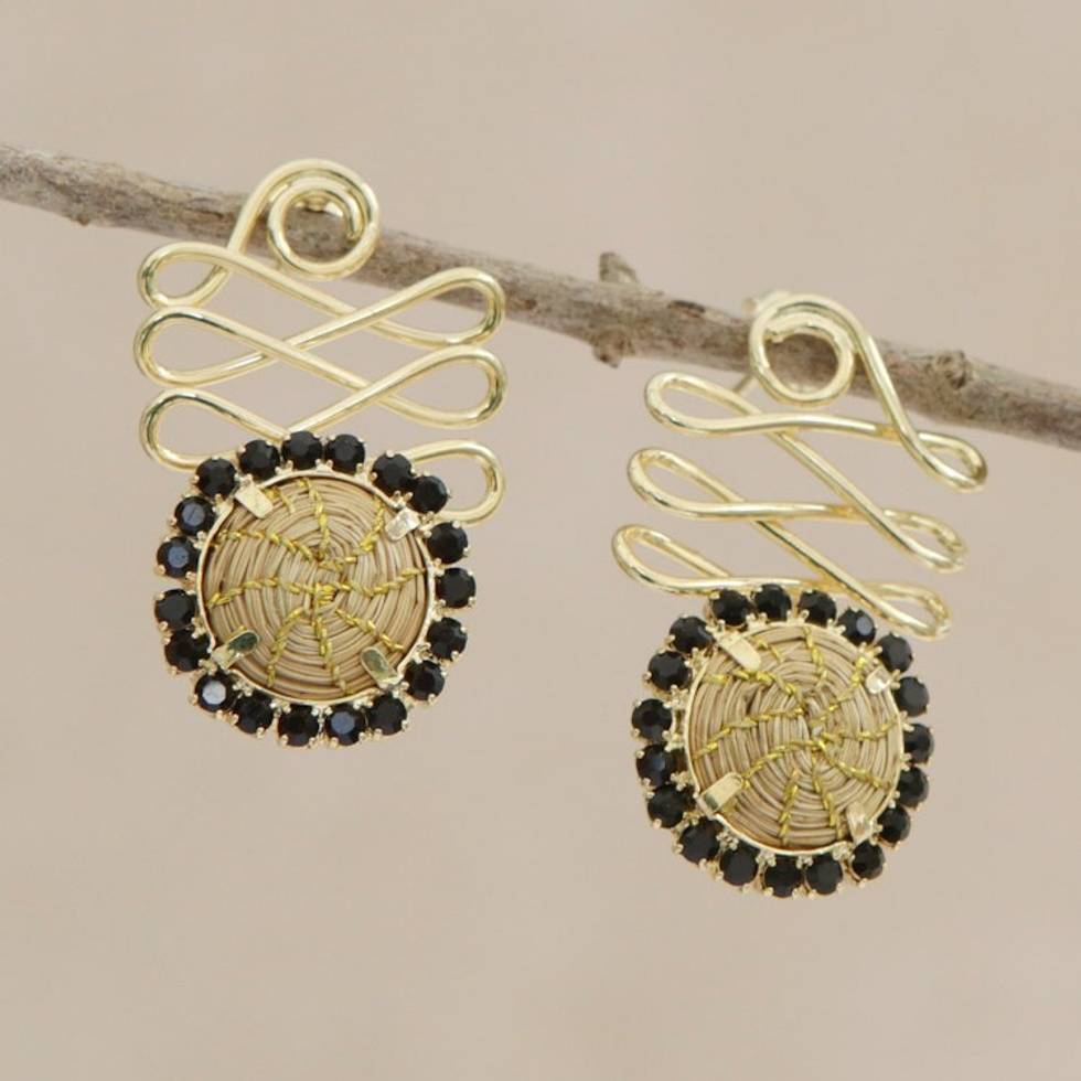 Gold Plated Golden Grass Earrings with Black Glass Beads 'Winding Journey in Black' Item ID: 2669887431