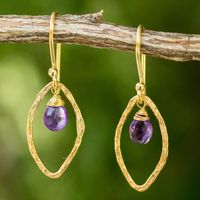Gold Plated Handcrafted Earrings with Amethyst 'Swinging Ellipses' Item ID: 2671802121