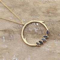 Gold-Plated Labradorite and Onyx Wreath Pendant Necklace 'Golden Wreath' Item ID: 2669925226