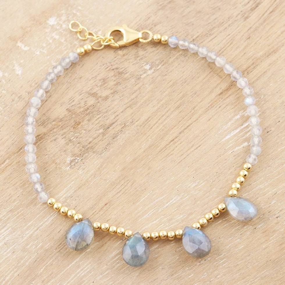 Gold-Plated Labradorite Charm Bracelet 'Early Morning Rain' Item ID: 2671789193
