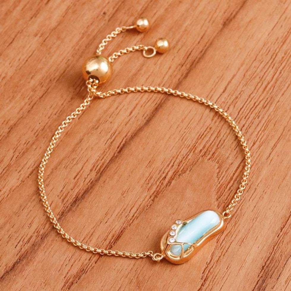 Gold-Plated Larimar Blue Topaz Thong Sandal Pendant Bracelet 'Chic Thong Sandal' Item ID: 2676647314