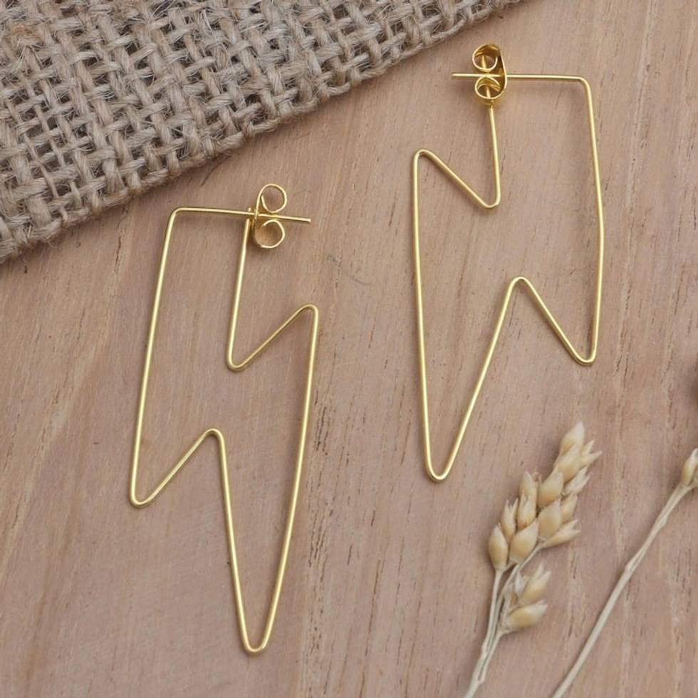 Gold-Plated Lightening Bolt Drop Earrings 'Golden Bolt' Item ID: 2671747269