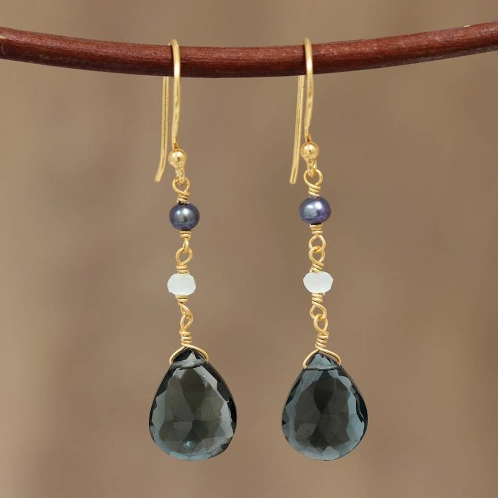 Gold Plated London Blue Topaz Dangle Earrings from India 'London Dazzle' Item ID: 2669924344