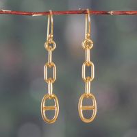 Gold-Plated Modern Link-Shaped Dangle Earrings from India 'Minimalist Links' Item ID: 2676664477