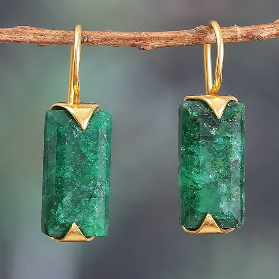 Gold-Plated Modern Minimalist Green Beryl Drop Earrings 'Emerald Bliss' Item ID: 2671623944