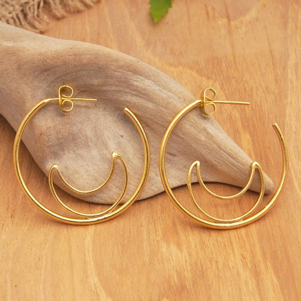 Gold-Plated Moon-Themed Half-Hoop Earrings from Indonesia 'Through the Moon' Item ID: 2671573977