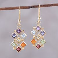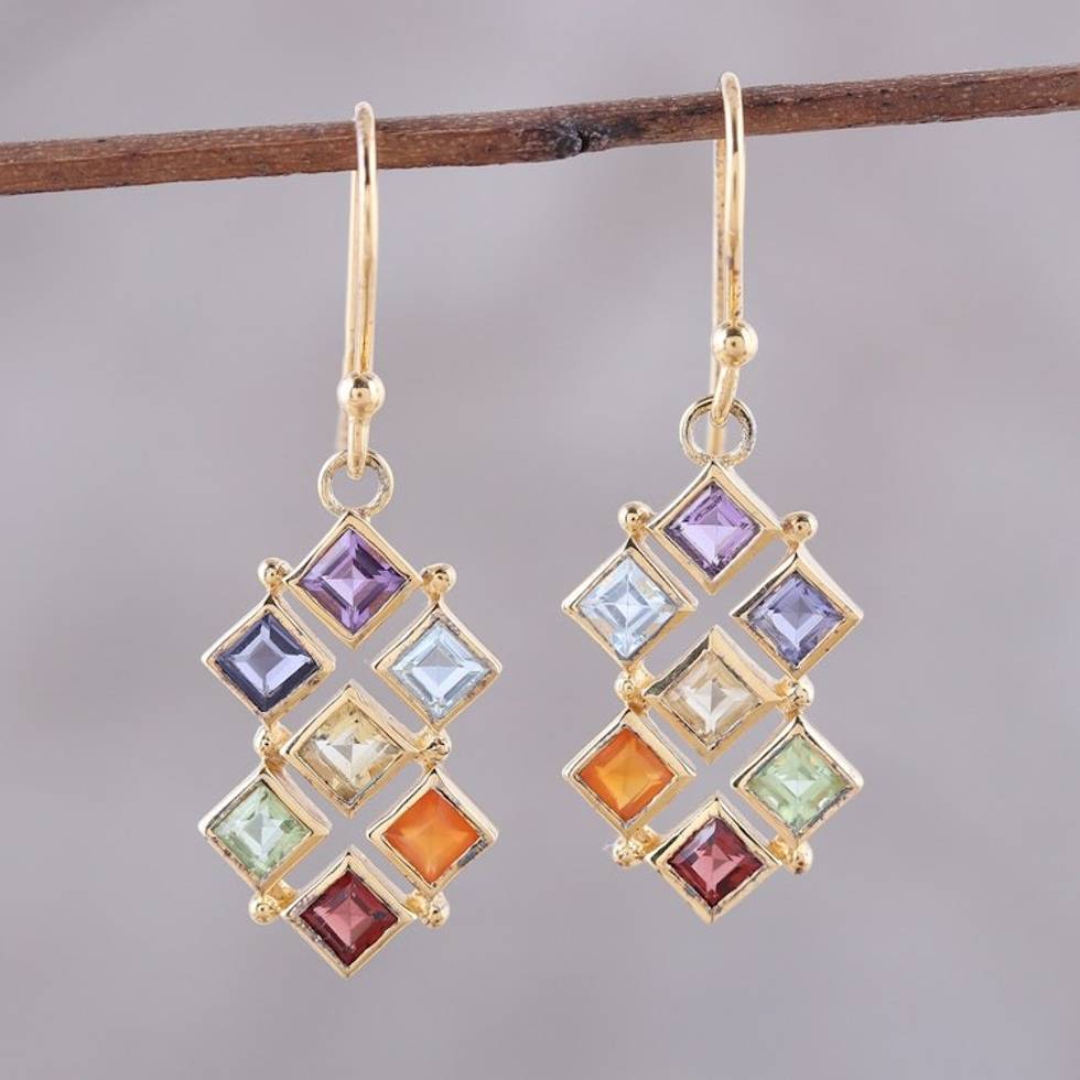 Gold-Plated Multi-Gemstone Chakra Earrings from India 'Wellness' Item ID: 2671618874