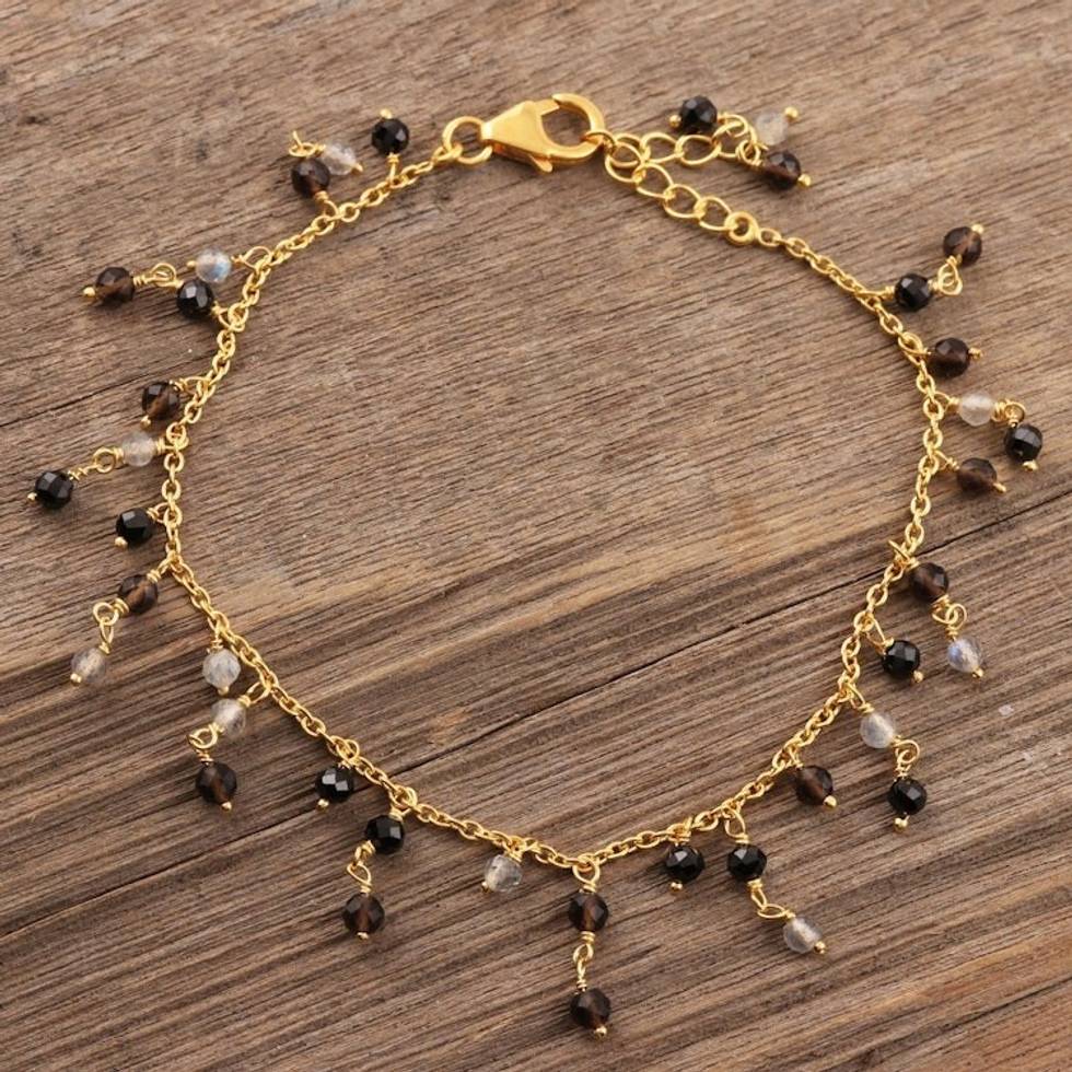 Gold Plated Multi-Gemstone Charm Bracelet from India 'Magical Dangle' Item ID: 2671789686