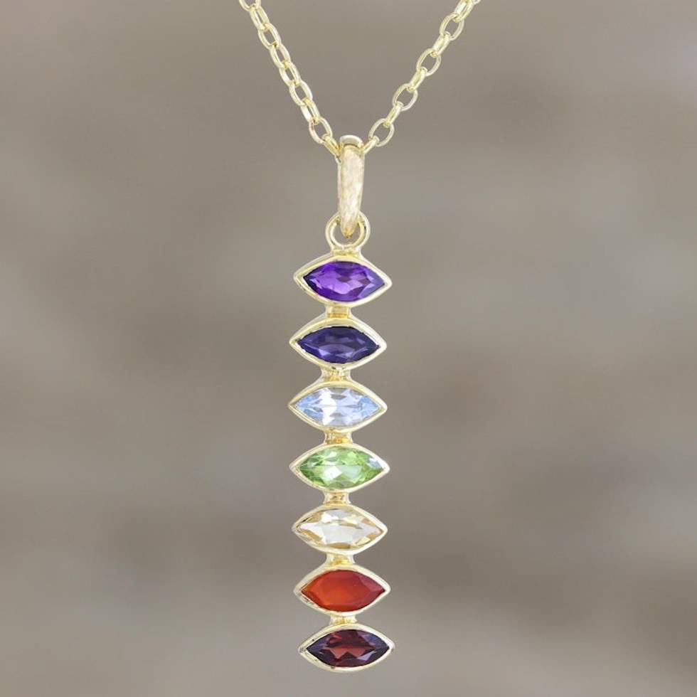 Gold-Plated Multi-Gemstone Pendant Necklace from India 'Chakra Stones' Item ID: 2669924875