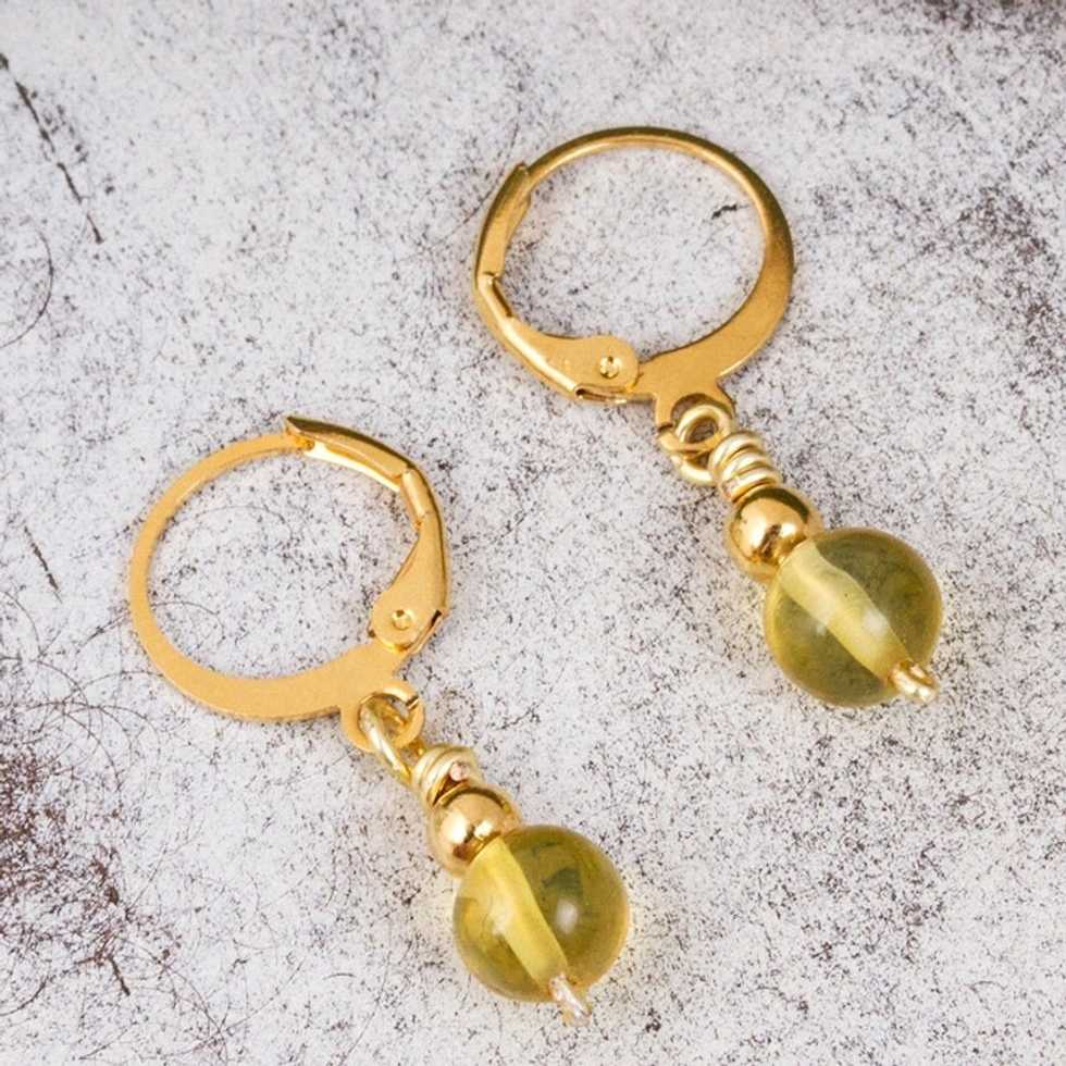 Gold Plated Natural Amber Dangle Earrings from Mexico 'Ancient Orbs' Item ID: 2669926850