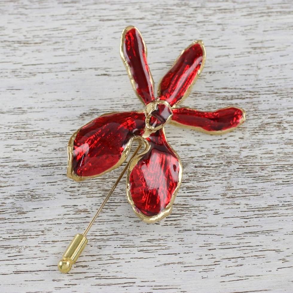 A lovely jewelry piece for any lady with a jewelry hoard full of years of more conventional gifts, simple and elegant, and especially if she has a weakness for the beauty of orchids! My wife loves it