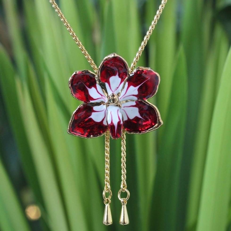 Gold Plated Natural Orchid Necklace from Thailand 'Scarlet Dancer' Item ID: 2671803203