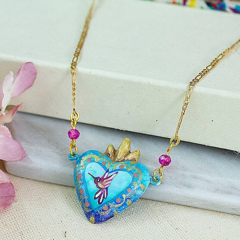 Gold-Plated Necklace with Papier Mache Sacred Heart Pendant 'Little Miracle' Item ID: 2671639007